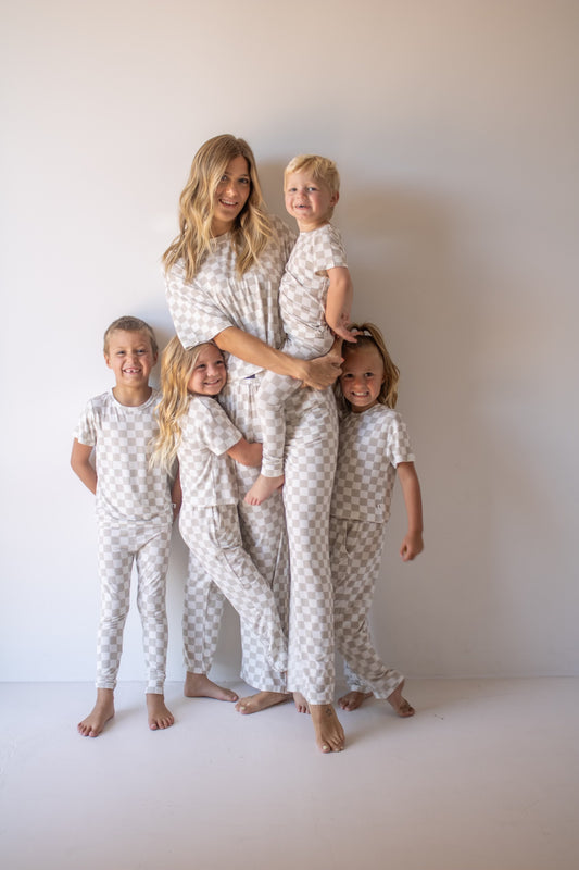 Women's Boxy Tee Lounge Set Print: Checkerboard