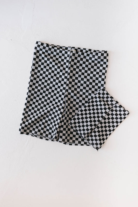 Women's Ribbed Biker Shorts Print: Black + Grey Ribbed Checker
