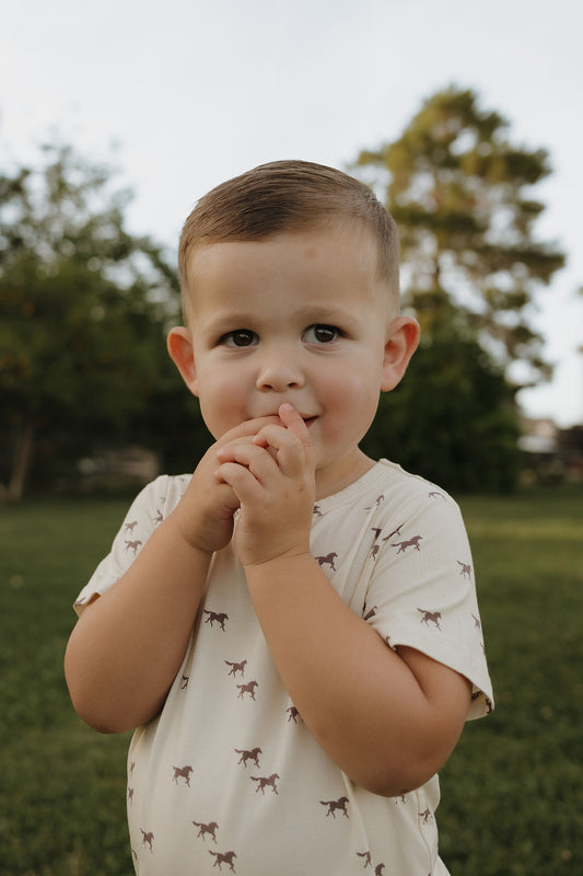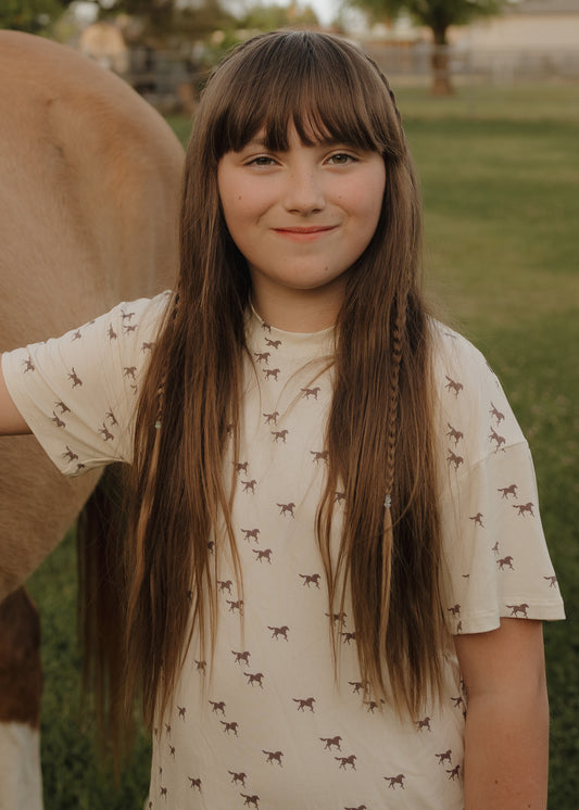 Girl's Bamboo Short Set Print: Wild Horses
