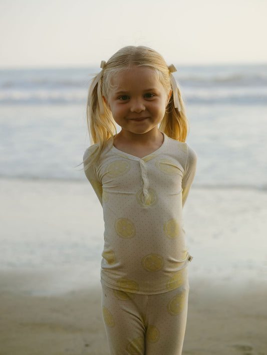 Bamboo Two Piece Pajamas Print: Lemon Drop
