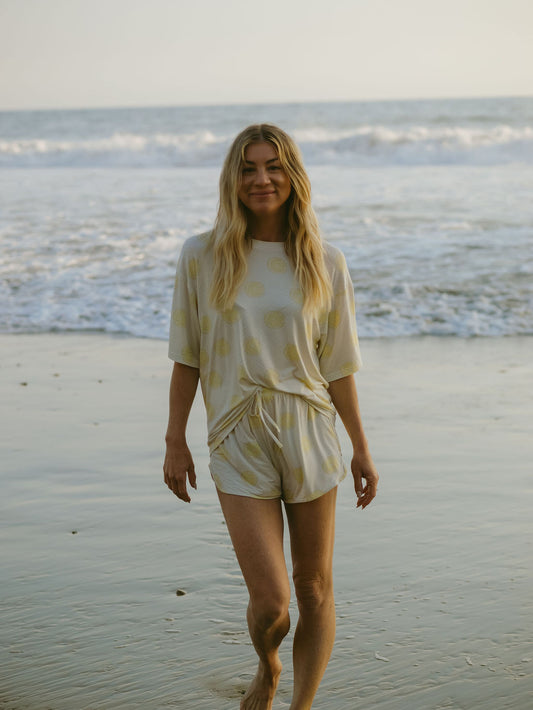 Short Sleeve Women's Bamboo Lounge Set Print: Meet Me at the Beach