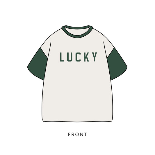 Long Sleeve Bamboo Snapsuit Print: Lucky