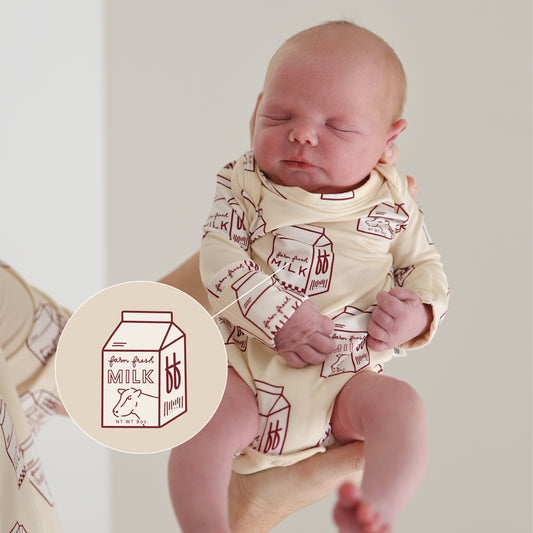Long Sleeve Bamboo Snapsuit Print: Milk