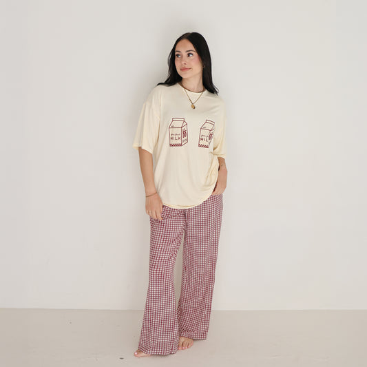 Women's Boxy Tee Lounge Set Print: Milk