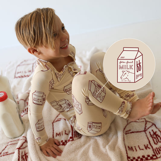 Bamboo Two Piece Pajamas Print: Milk