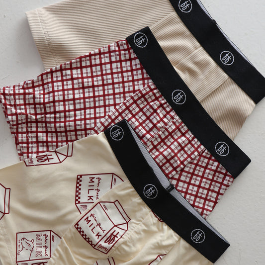 Bamboo Boxers (3 Pack) Print: Window Pane, Milk & Ribbed Cream