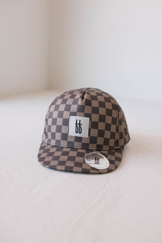 Children's Trucker Hat Print: Faded Brown Checkerboard