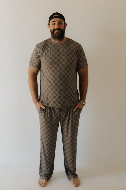 Men's Bamboo Short Sleeve Pajama Print: Faded Brown Checkerboard