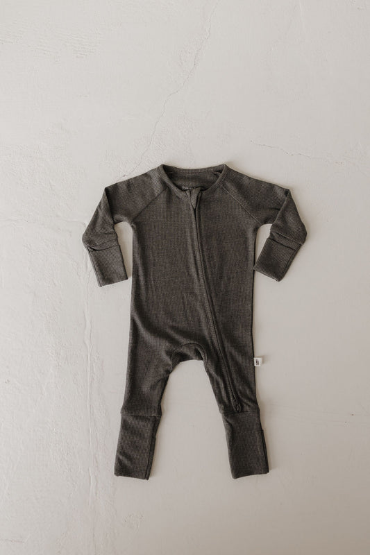 Bamboo Zip Pajamas Print: Charcoal Arm Day