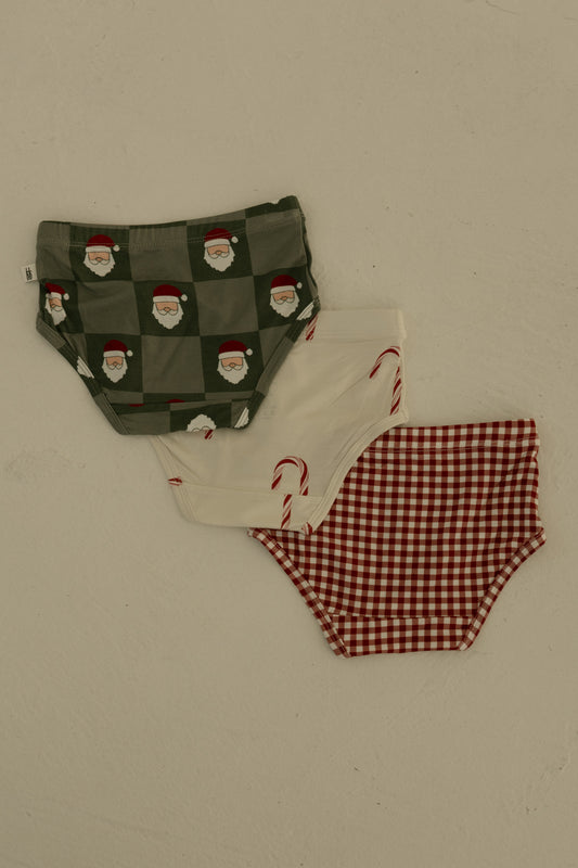 Girl's Bamboo Briefs (3 Pack) Print: Red Gingham, Candy Cane & Santa Checkerboard