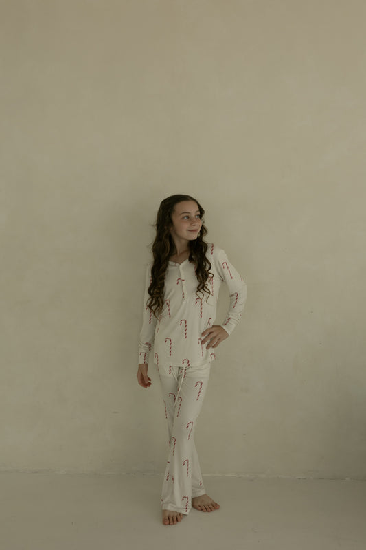 Pre-Teen Flare Bamboo Pajamas Print: Candy Cane