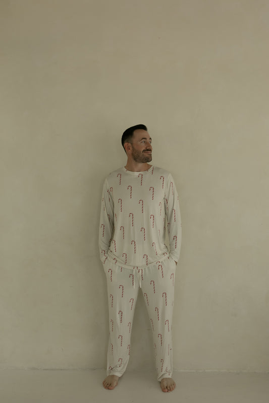 Men's Short Sleeve Bamboo Pajamas Print: Candy Cane