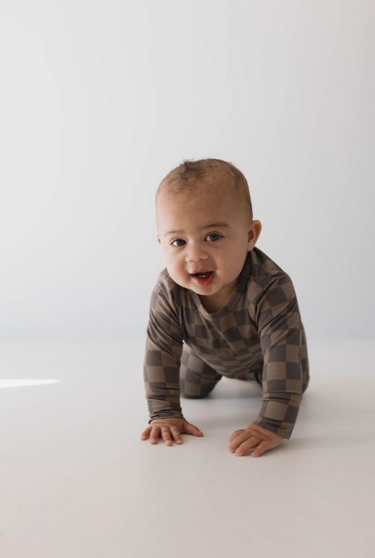 Sleepy Time Set Print: Faded Brown Checkerboard