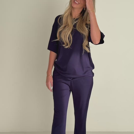 Our staff's top pick is the bamboo oversized short sleeve lounge set! We adore the ultra-cozy oversized tee and the stylish slight flare pants. Don’t forget to check out the matching baby and toddler pajamas in this cozy ribbed fabric!